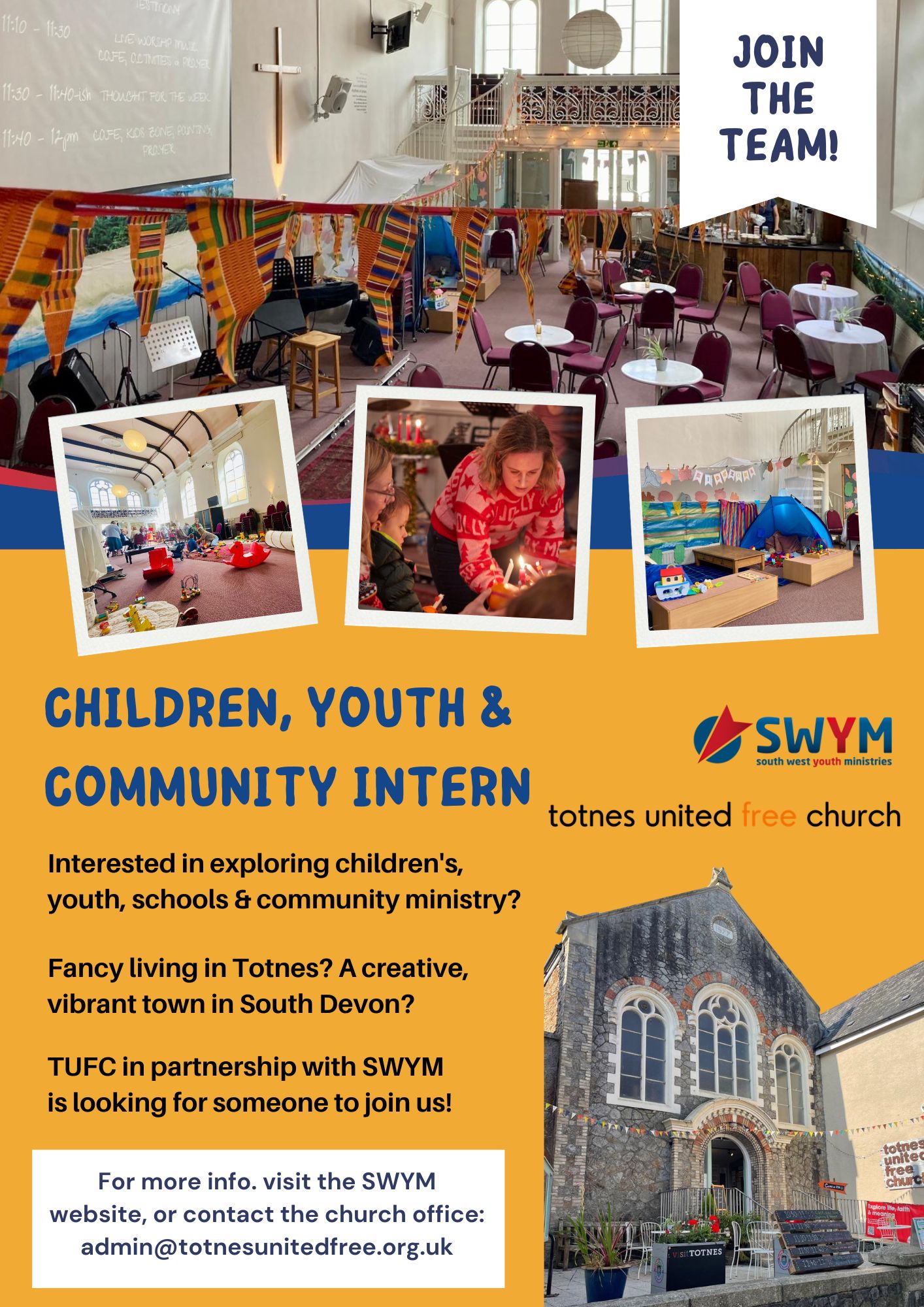If you think this is for you please see more information and apply at SWYM, or get in touch with us at admin@totnesunitedfree.com.